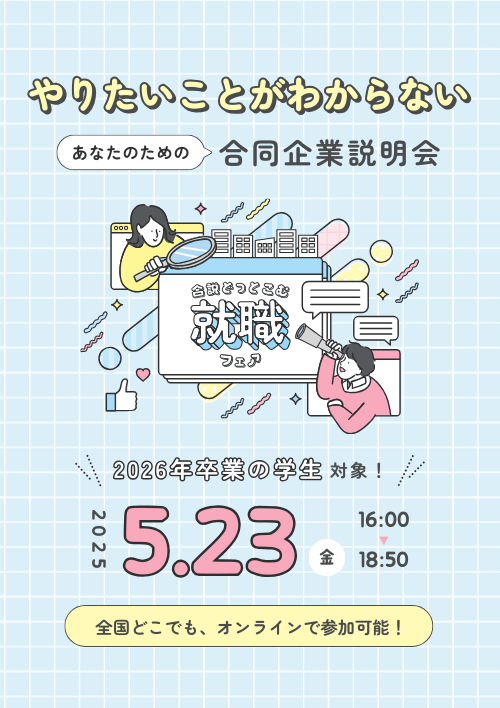 - 合同企業説明会に出展をお考えの企業様はこちらよりお問い合わせください。
