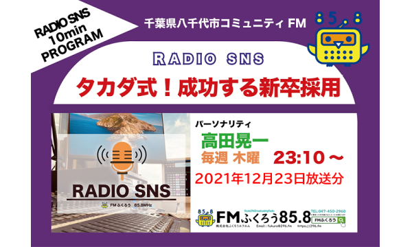12月23日放送分「タカダ式!成功する新卒採用」をYouTubeにアップロードしました!