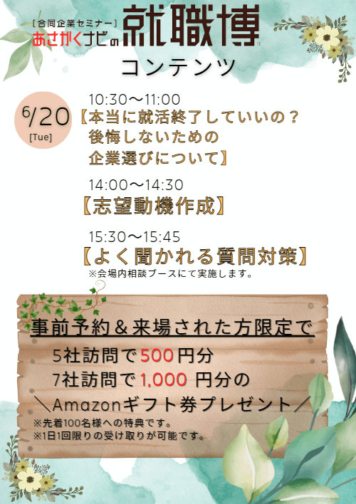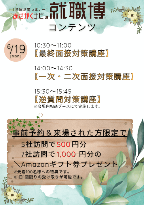 - 合同企業説明会に出展をお考えの企業様はこちらよりお問い合わせください。