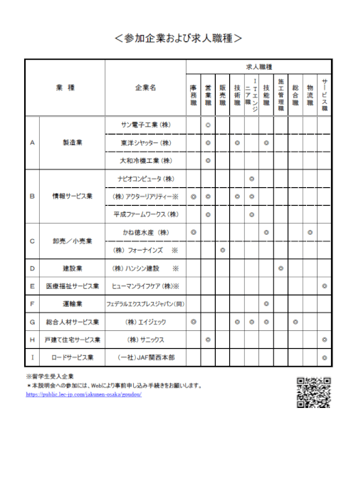 - 合同企業説明会に出展をお考えの企業様はこちらよりお問い合わせください。