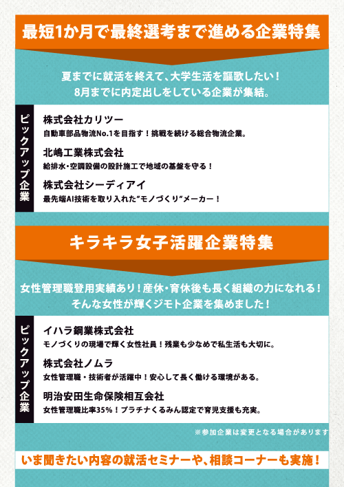 - 合同企業説明会に出展をお考えの企業様はこちらよりお問い合わせください。